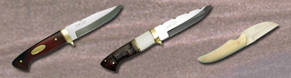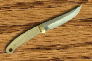 Style 331 fillet or fishing knife. The blade is hand polished, with a brass guard and giraffe bone handle. |