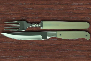 Steak knife sets can come in any denomination of knives and forks, or can consist of a set of knives only. We can customize the handles to suit your dining area. There is a choice of the traditional steak knife, which is slim, or the texan knife, which is broader and heavier.